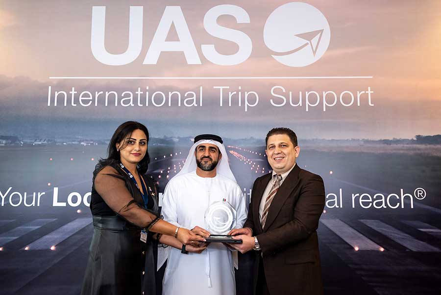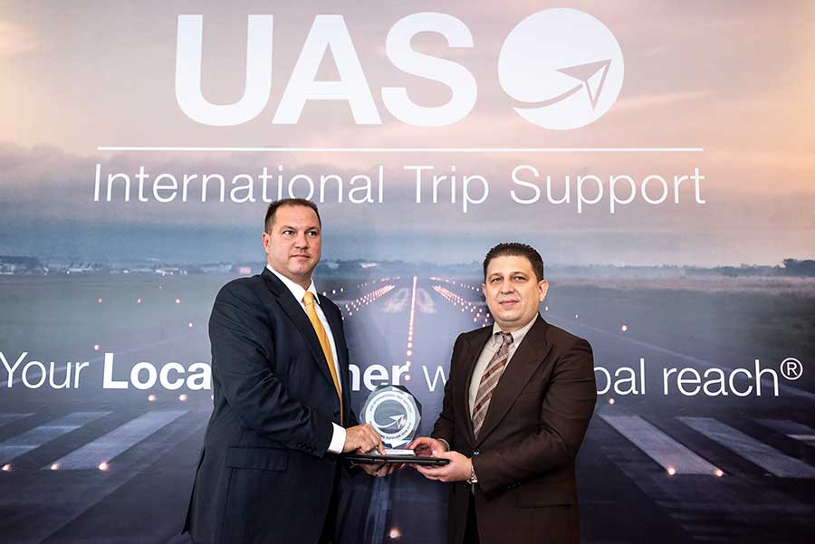 UAS honours the ‘best in business aviation’: Coinciding with the Dubai Airshow, global aviation solutions company UAS International Trip Support once again honoured the best in business aviation at the annual UAS Outstanding Suppliers Awards ceremony yesterday.The awards were presented by Mr Mohammed Al Husary, UAS Executive President at an event for business aviation friends and media at Jet Aviation’s stunning FBO conveniently situated adjacent to the Dubai World Central Airport (DWC).Of the eight award winners announced, all were in attendance to receive the awards accept for Lider Aviacao which was named Best Handler in the Americas.